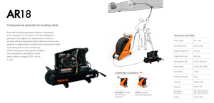 Pneumatic brushing equipment requires compressed air for operation. For this reason, we have designed air generators that adapt to the requirements of work to be done with the best performance: Maximum air flow and pressure in single-phase connection, low noise level for night work, being able to work continuously without heating, and also a great portability.