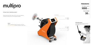 MULTIPRO is a pneumatic brushing device designed for cleaning exhaust ducts in kitchens and industrial settings.